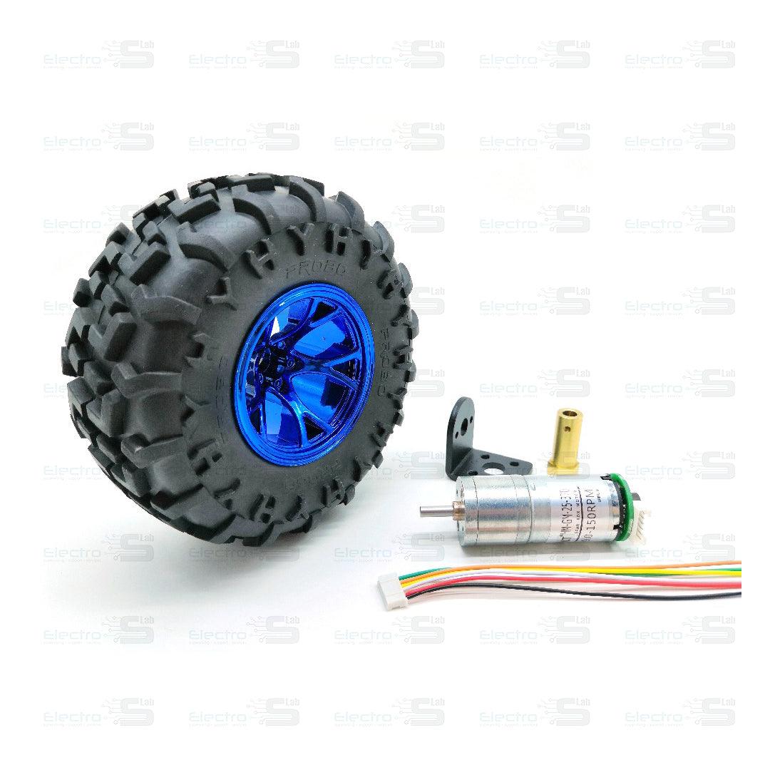 190rpm High Torque DC Motor + 130mm Blue Plastic Wheel + Coupling + Motor bracket - Electroslab