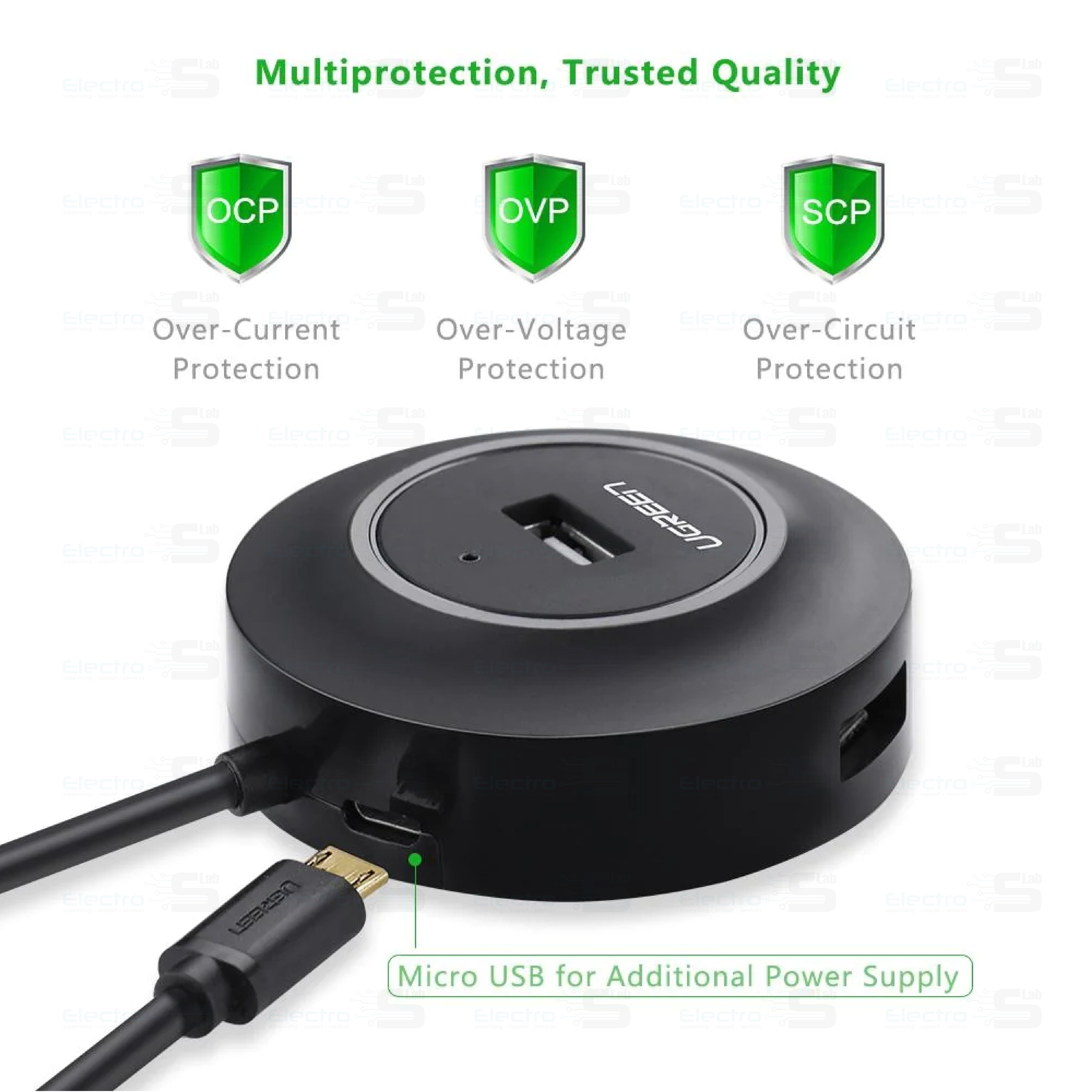 USB 2.0 4 PORTS HUB UGREEN CR106-20277 BLACK - Electroslab
